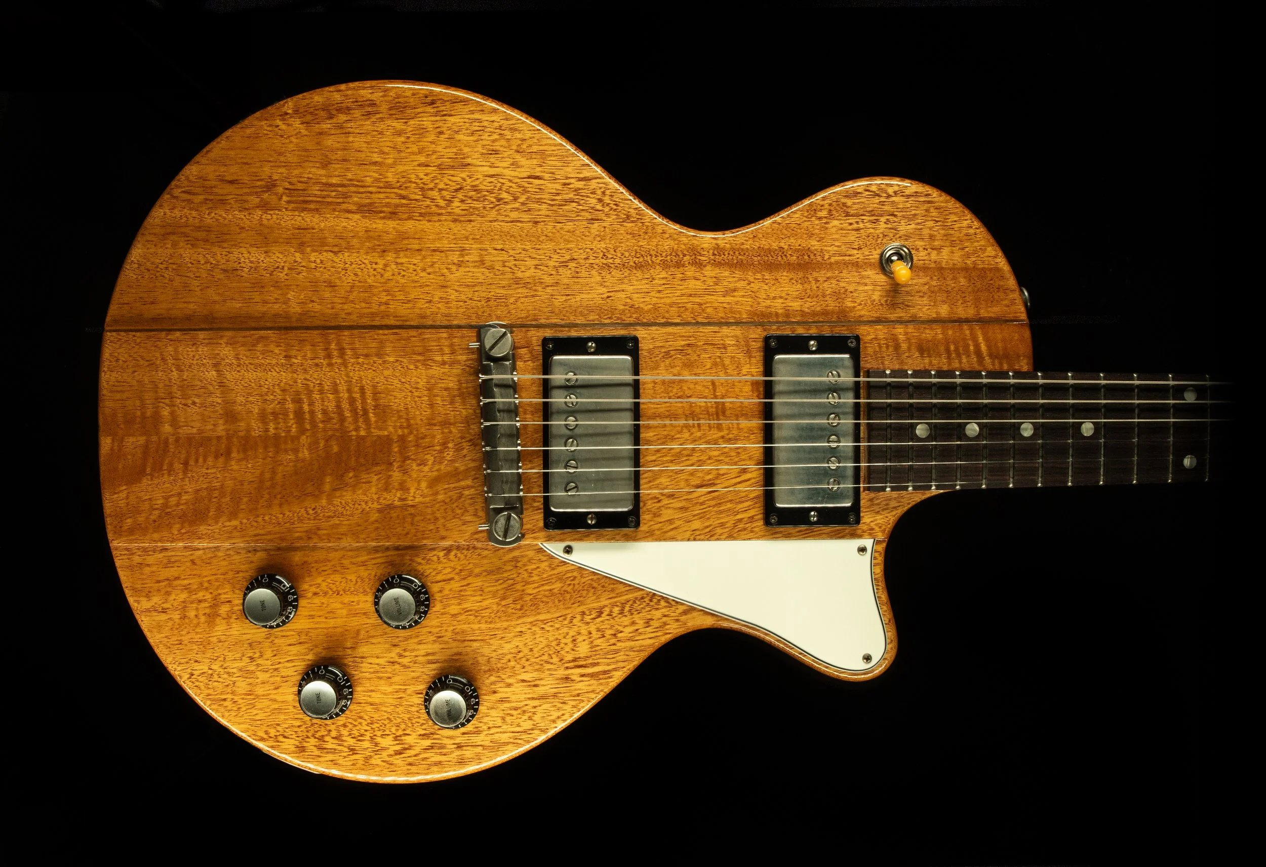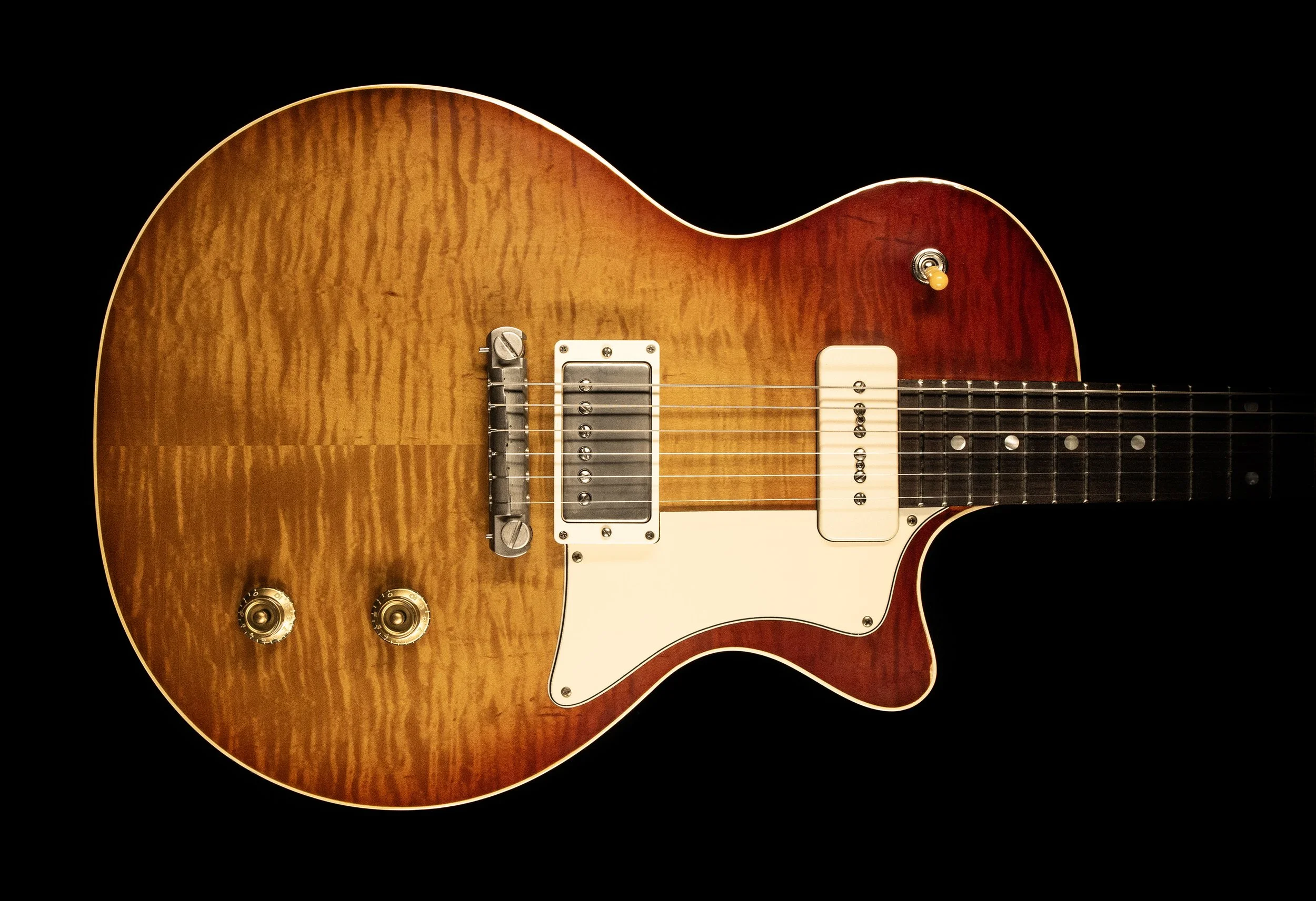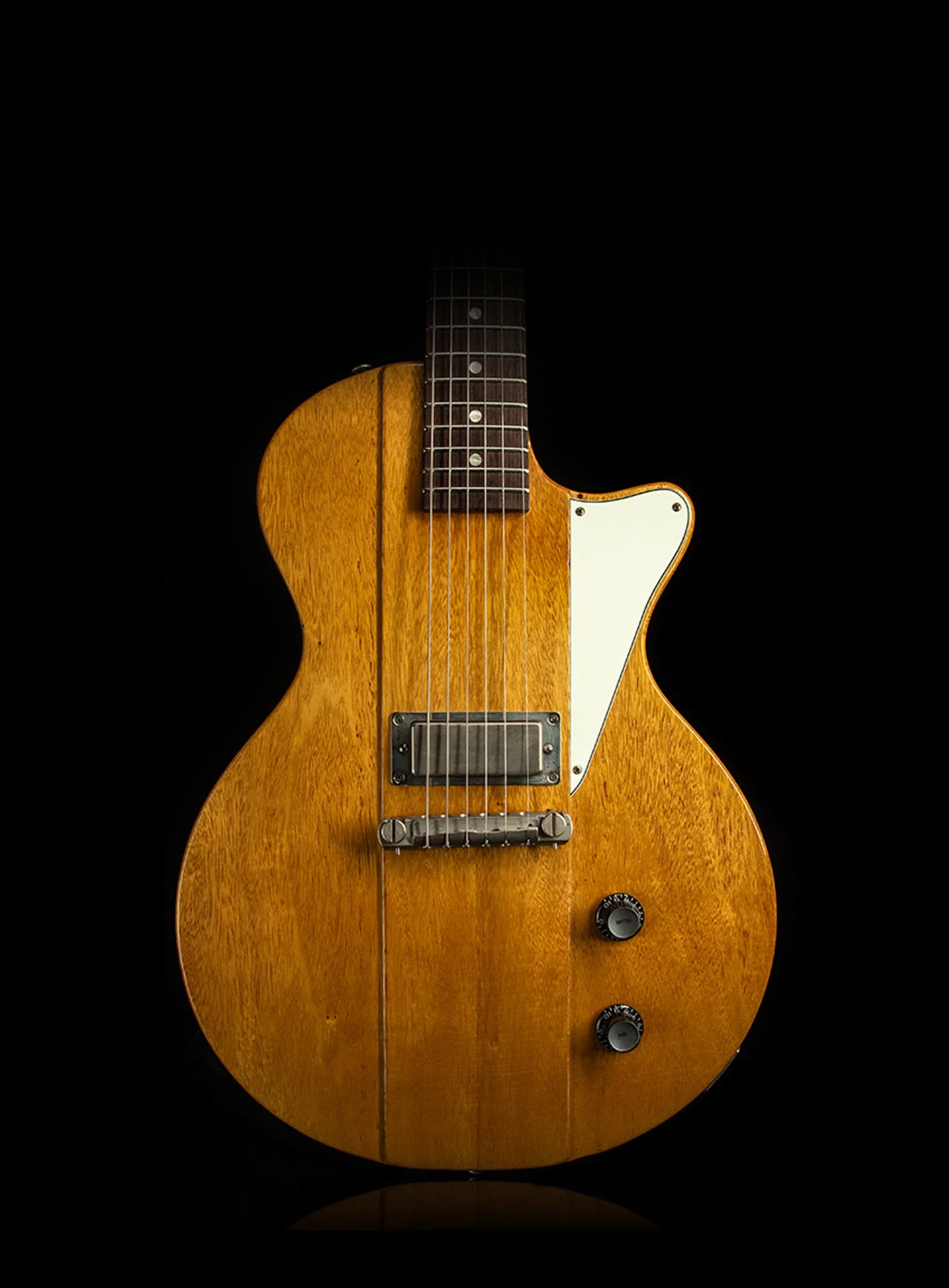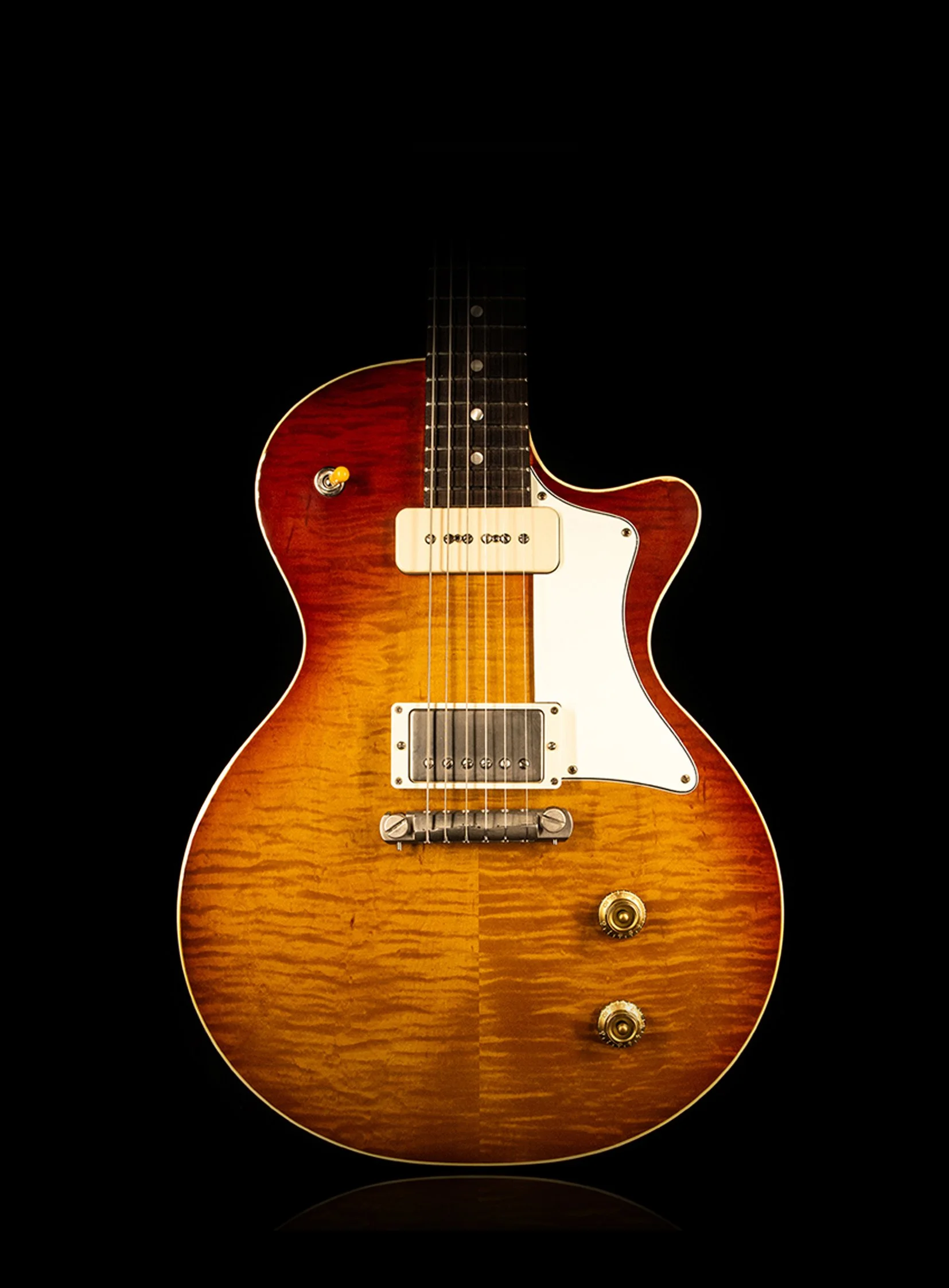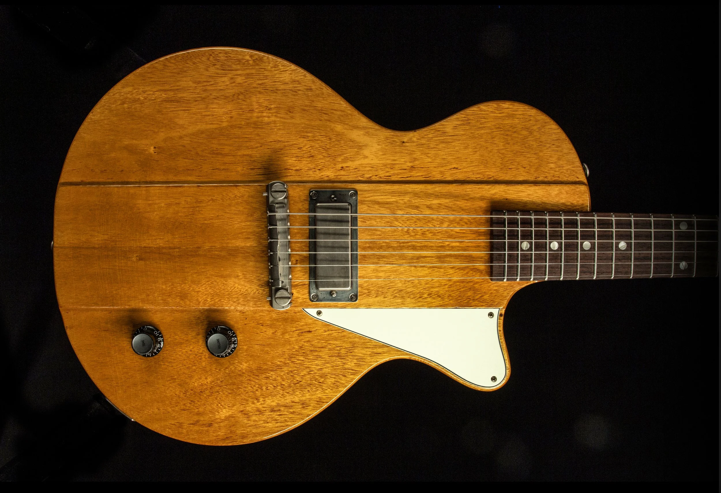 The Hurricane combines my favourite elements of the single cut guitars that were being made at 225 Parsons St, Kalamazoo, Michigan in the late 50s - the maple topped sunburst and the stripped back, slab body guitars.
