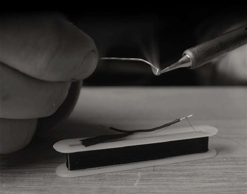 A very careful combination of Alnico 2 polished magnets and 42 gauge coil wire, provide a bridge DC resistance of 7.6K ohm, while the neck unit sits at 6.3K ohm, all allowing for a bright, yet well balanced tone.
